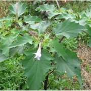 Le datura stramoine est une plante annuelle invasive de la famille des solanacées. Elle contient des alcaloïdes tropaniques – très toxiques pour l’homme et les mammifères – dans l’ensemble de la plante et surtout dans les graines.