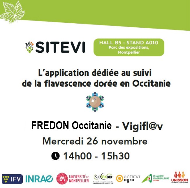 –>Rendez-vous sur le stand Recherche, Formation, Innovation pour découvrir VIGIFL@V et en savoir plus sur nos missions et nos outils dédiés à la surveillance de la vigne.