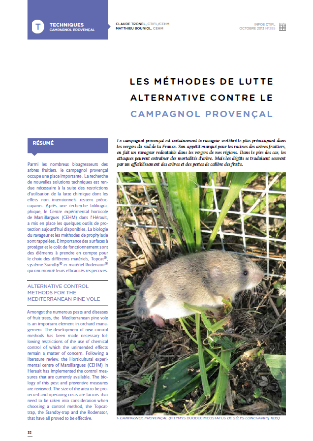 [CTIFL – arboriculture] Lutte alternative contre le campagnol provençal
